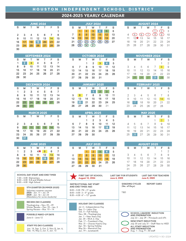 Hisd Academic Calendar 2025 2025 School – Houston is hurtling toward the district’s first day of school on Aug. 12. Students will encounter more changes in its second year of state-appointed leadership. Nearly half, or 130 schools, of the . The Ministry of National Education and Vocational Training (MENFP) has published the school calendar for the academic year 2025-2025, which includes 188 school days. SCHOOL CALENDAR October 2025 .